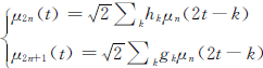 式中:當(dāng)n=0時(shí),μ0(t)=Φ(t),μ1(t)=φ(t)。以上定義的函數(shù)集合{μn(t)}m∈z為由μ0(t)=Φ(t)所確定的小波包,由此,小波包{μn(t)}n∈z是包括尺度函數(shù)μ0(t)和小波母函數(shù)μ1(t)在內(nèi)的一個(gè)具有一定聯(lián)系的函數(shù)集合。