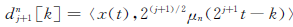 記x(t)在子空間U2nj和U2n+1j上的投影(小波包)系數(shù)分別為d2nj和d2n+1j,則可得: